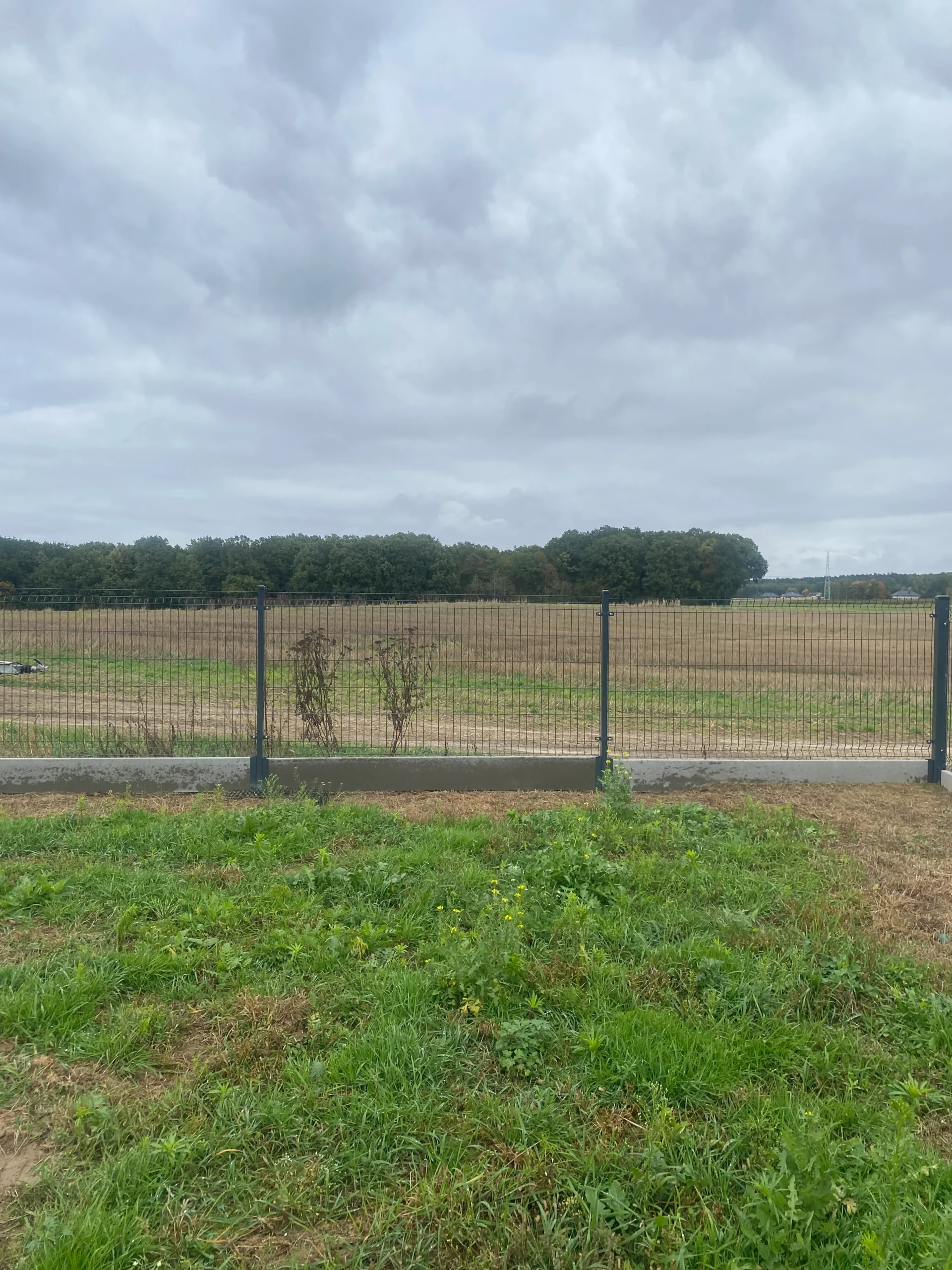 – teren w pełni ogrodzony – front ogrodzenie systemowe, ocynkowane i malowane proszkowo z bramą i furtką, pozostała część działki – panele z betonowym cokołem.